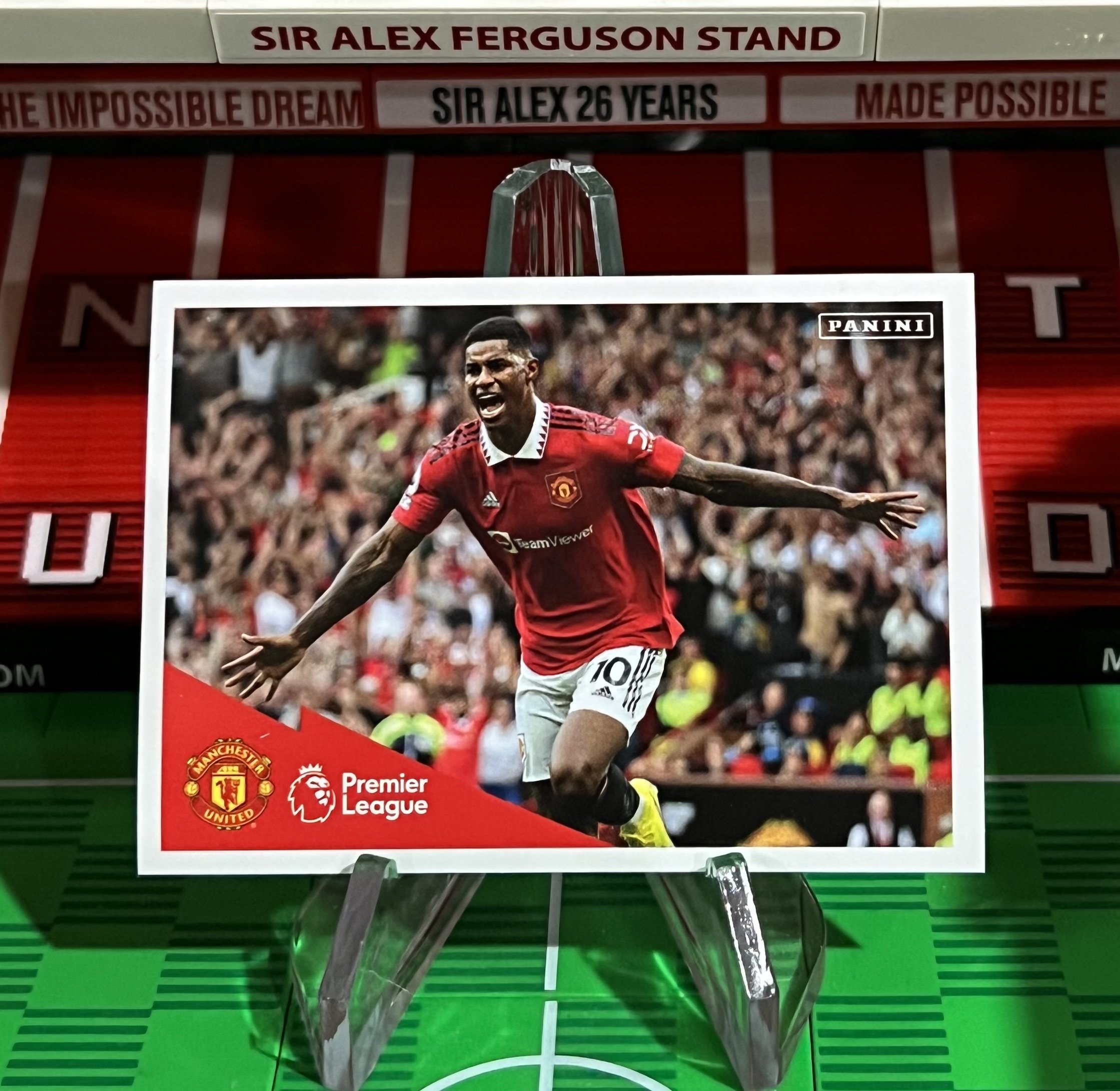 Description: Marcus Rashford Celebration card from the Panini Premier League sticker collection