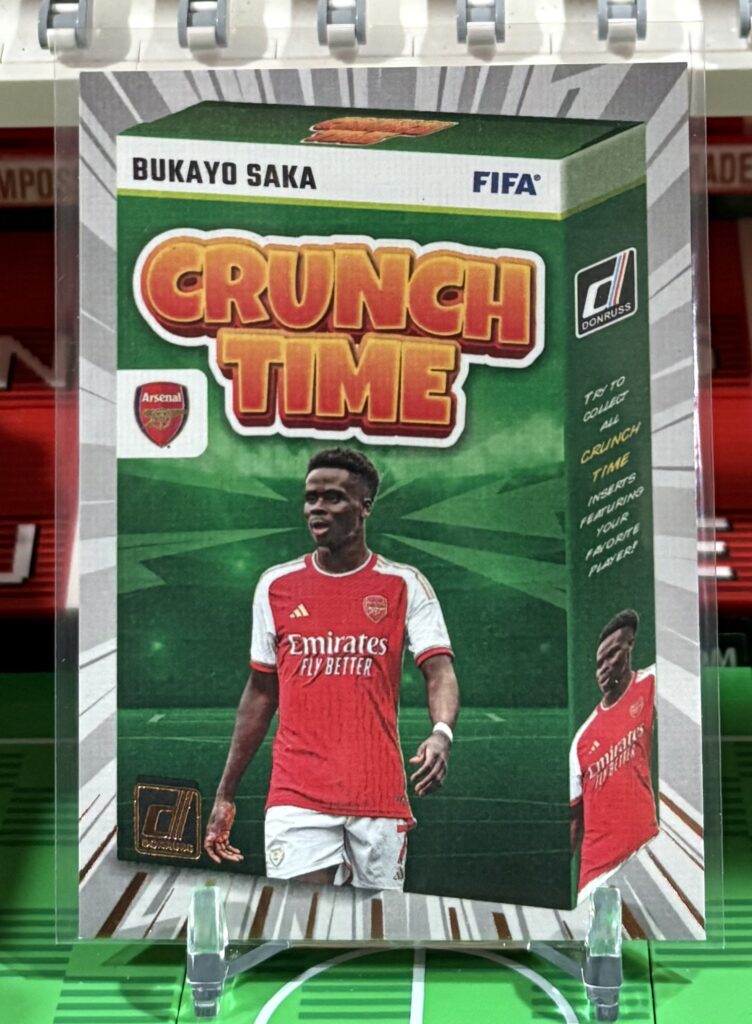 Description: Bukayo Saka 2024 Donruss Crunch Time card from the Donruss soccer collection