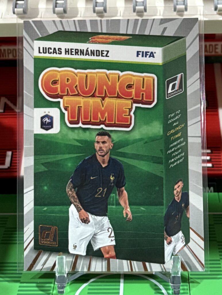 Description: Lucas Hernandez 2024 Donruss Crunch Time card from the Donruss soccer collection