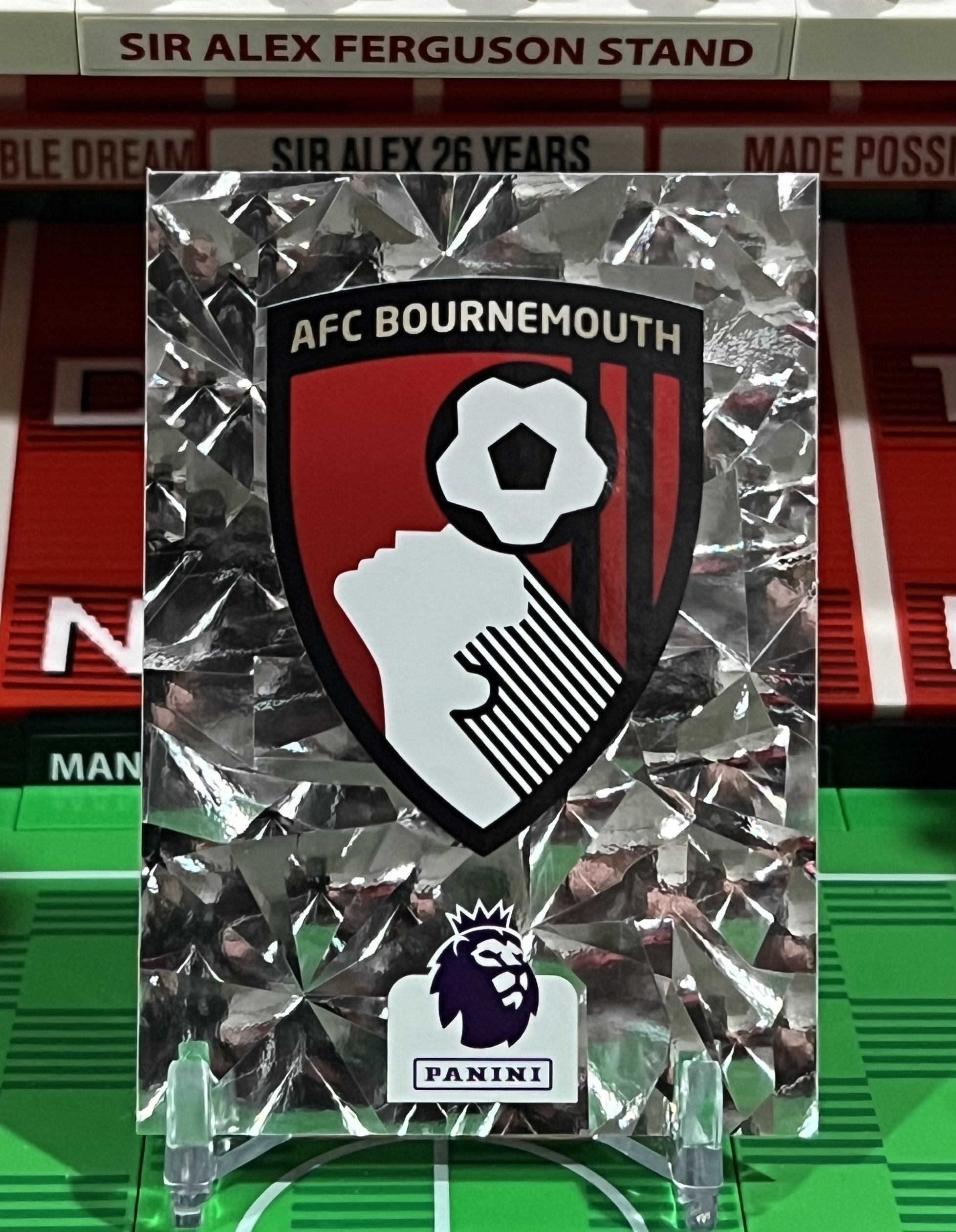 A collection of AFC Bournemouth 2024 Panini Stickers including Dominic Solanke Elite sticker, Illia Zabarnyi One To Watch sticker, and Milos Kerkez Super Signing sticker.