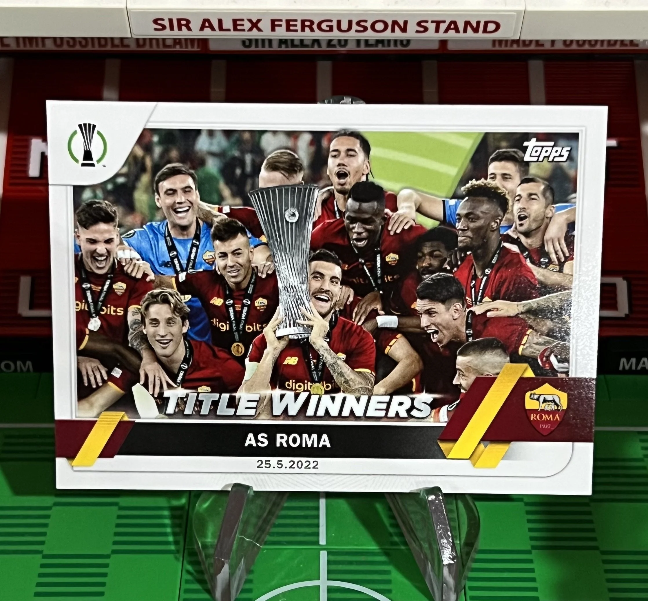 Description: AS Roma Title Winners card from the 2023 Topps UEFA Club Competitions Card collection.