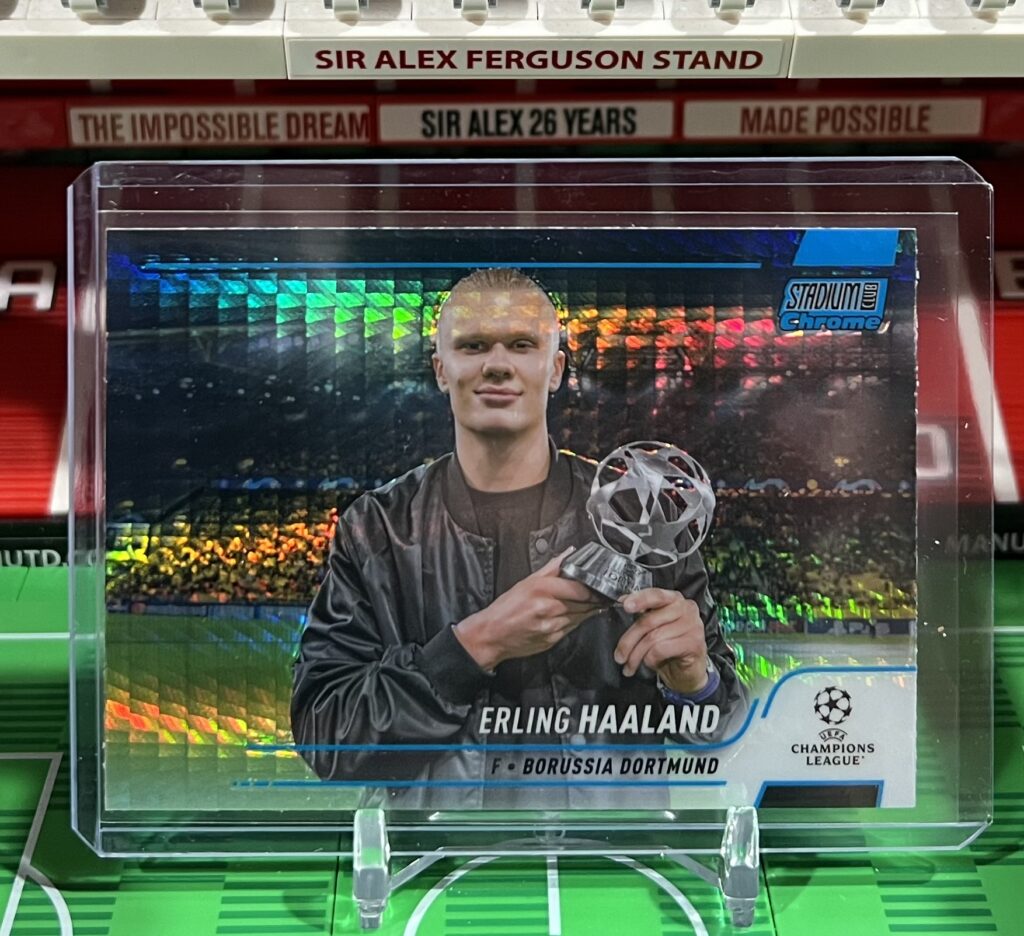 Description: Erling Haaland Blue Prizm card from the 2022 Topps Stadium Club Chrome collection