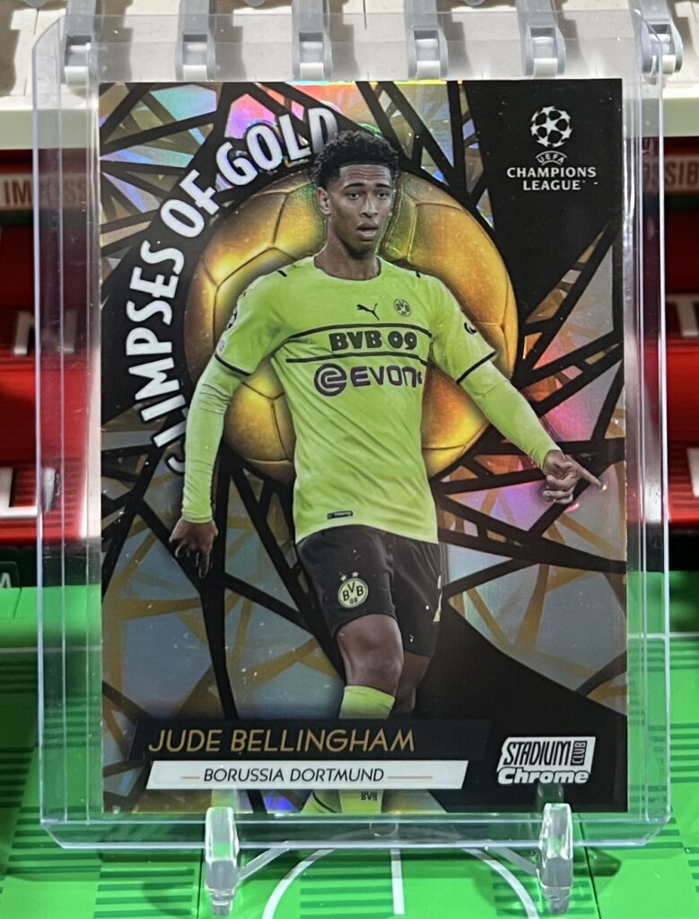 Description: Jude Bellingham Glimpses Of God card from the 2022 Topps Stadium Club Chrome collection