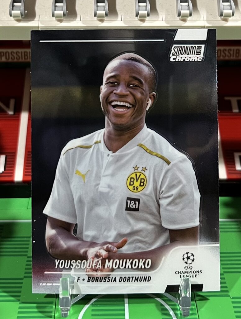 Description: Youssoufa Moukoko card from the 2022 Topps Stadium Club Chrome collection