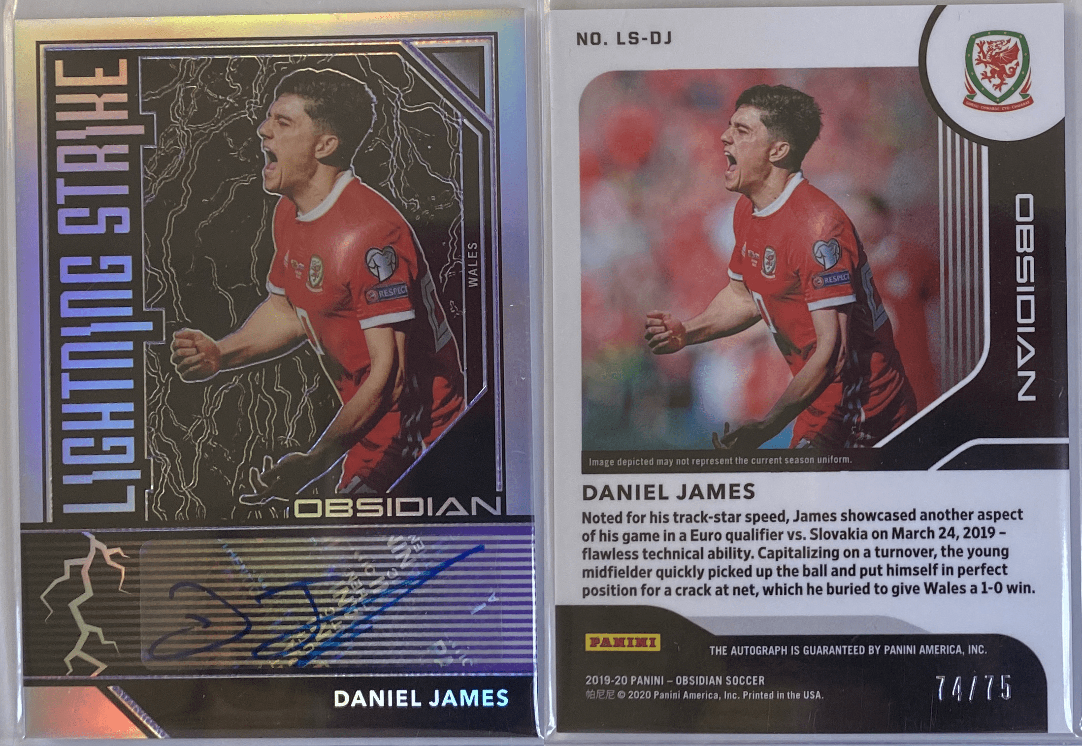 Daniel Jame Obsidian Soccer Card. Signed and numbered 74/75.