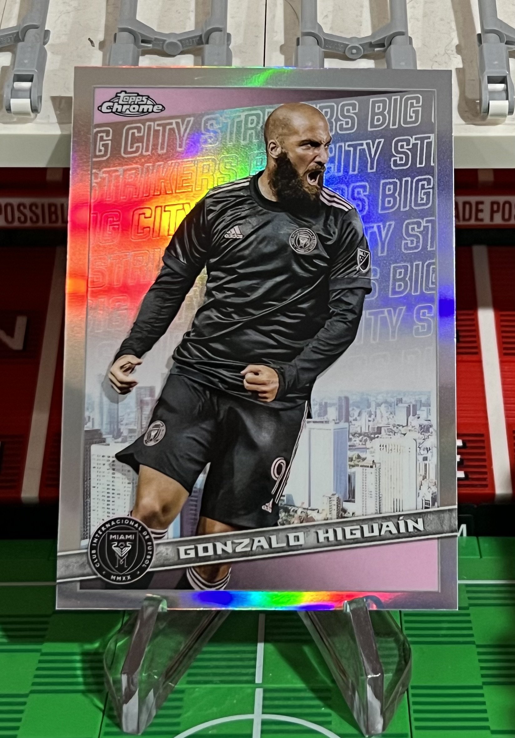 A collection of Inter Miami 2022 Topps Chrome MLS including a Gonzalo Higuain Big City Strikers card.