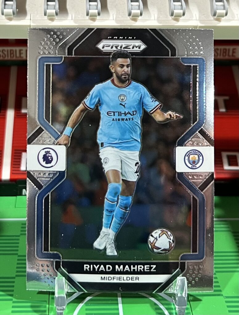 Description: Riyad Mahrez card from the 2022-23 Panini Prizm collection