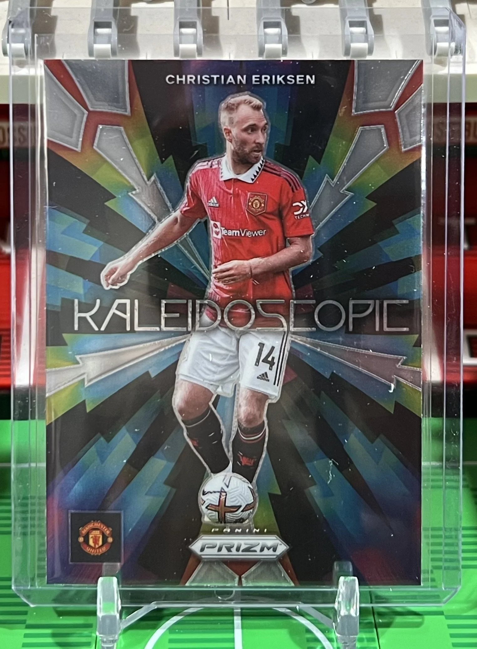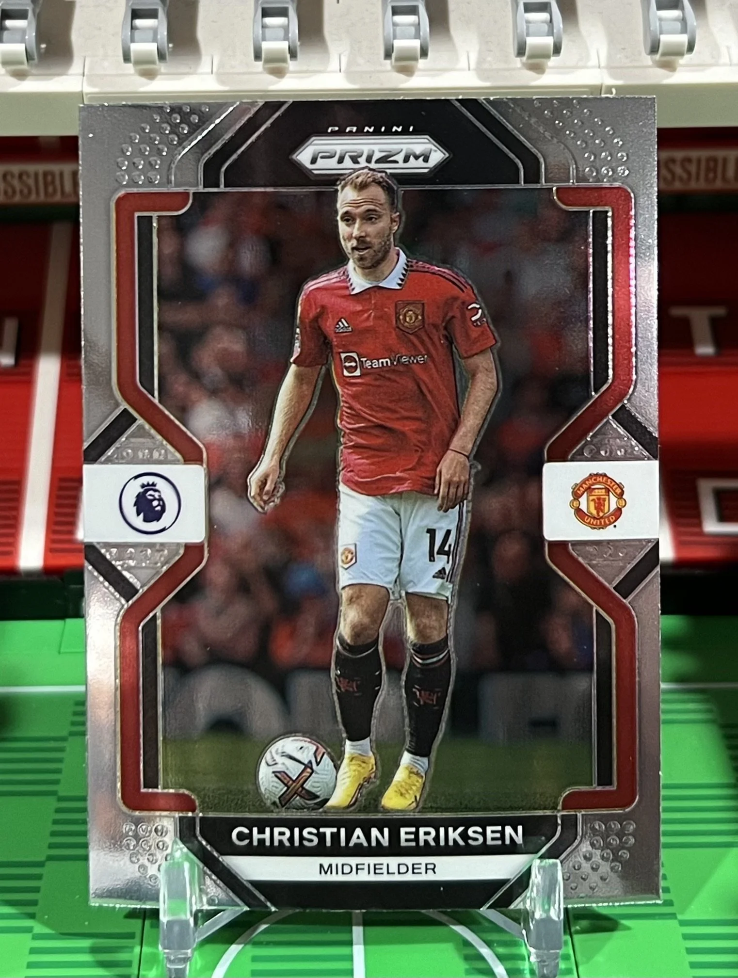 Name: Christian EriksenManufacture: PaniniNumber: 82Year: 2022-23Description: Christian Eriksen card from the 2022-23 Panini Prizm collection