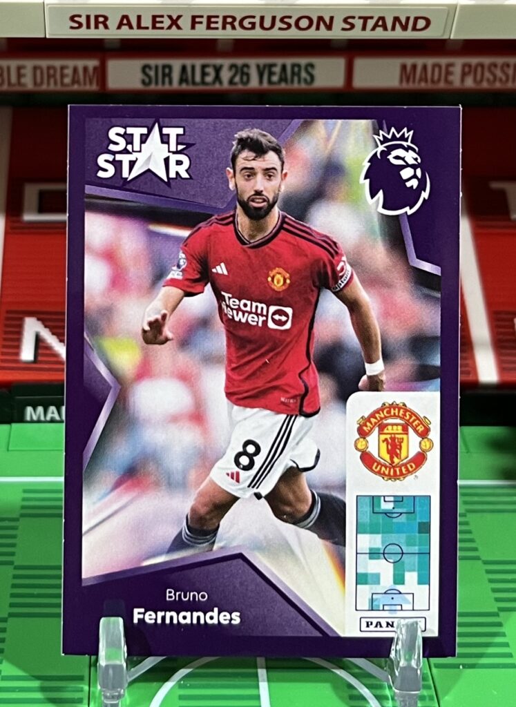 Description: Bruno Fernandes Stat Star sticker from the 2024 Panini Premier League sticker collection