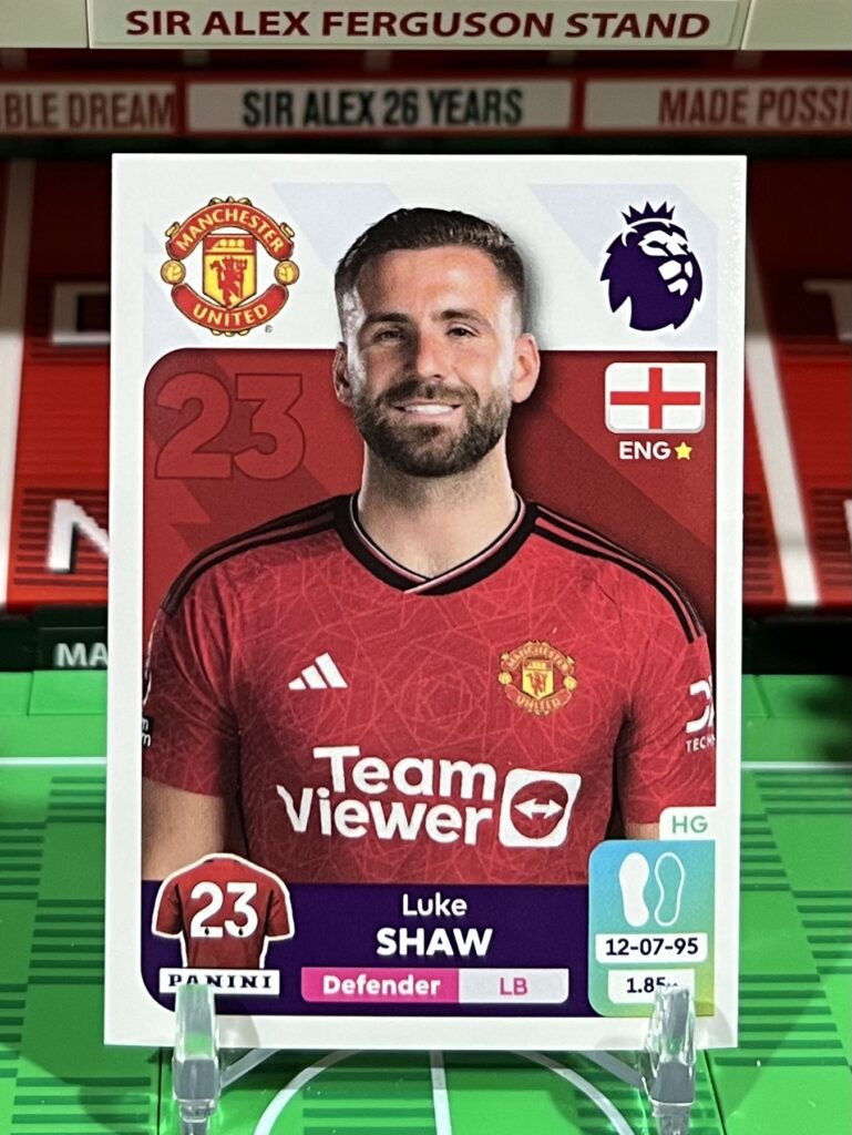 Description: Luke Shaw sticker from the 2024 Panini Premier League sticker collection
