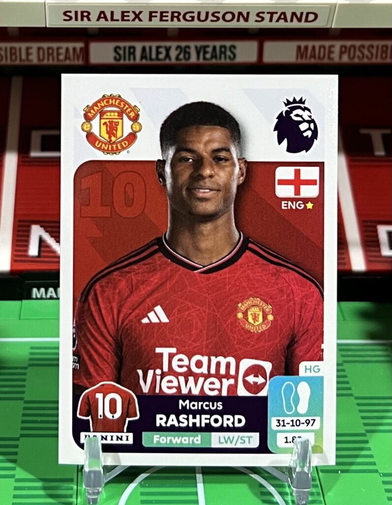 Description: Marcus Rashford sticker from the 2024 Panini Premier League sticker collection