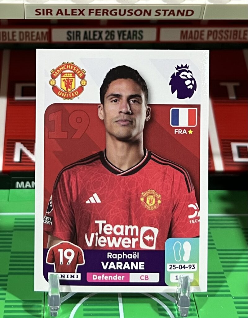 Description: Raphael Varane sticker from the 2024 Panini Premier League sticker collection