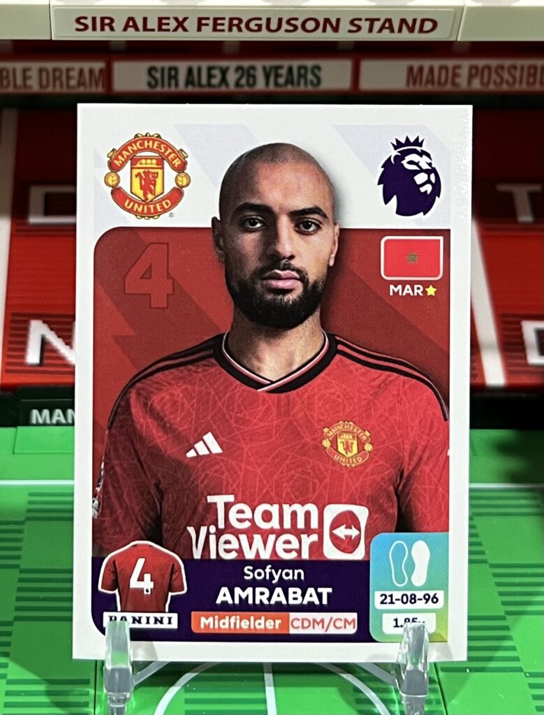 Description: Sofyan Amrabat sticker from the 2024 Panini Premier League sticker collection