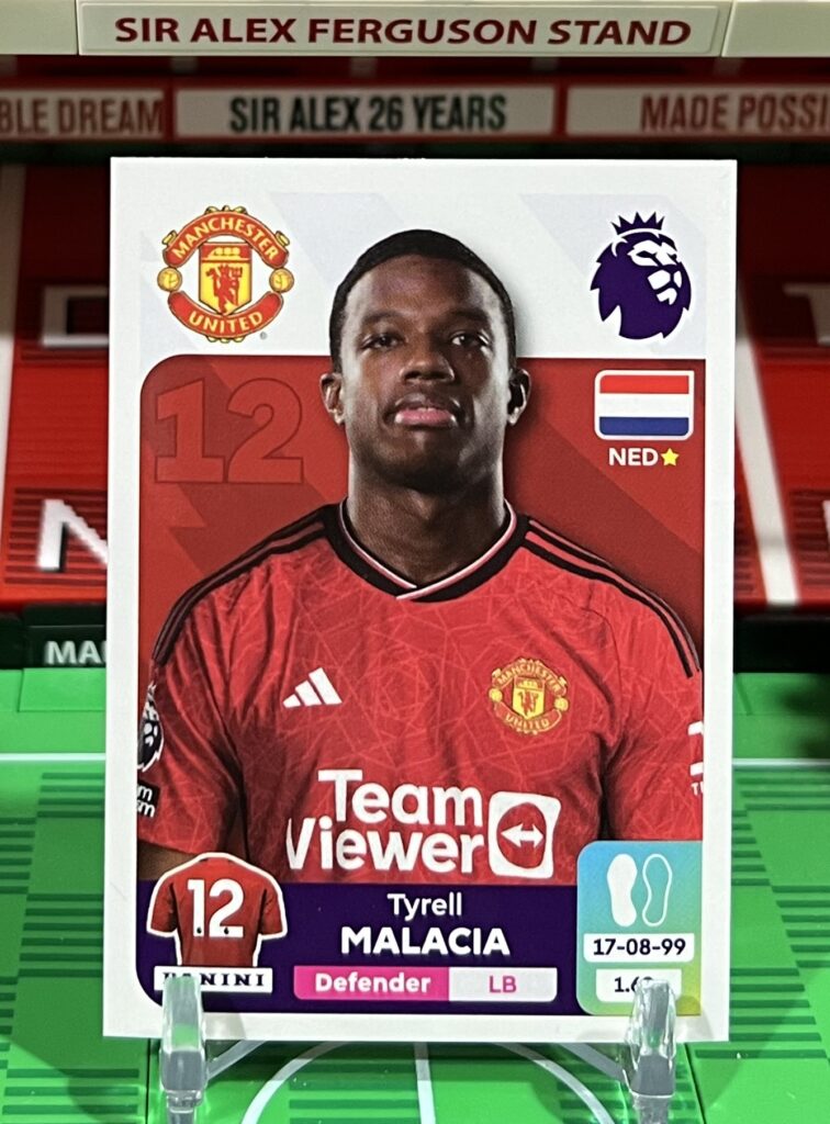 Description: Tyrell Malacia sticker from the 2024 Panini Premier League sticker collection