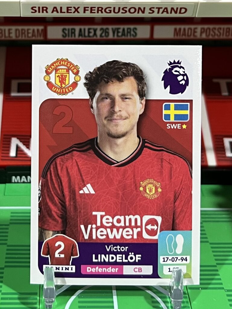 Description: Victor Lindelof sticker from the 2024 Panini Premier League sticker collection