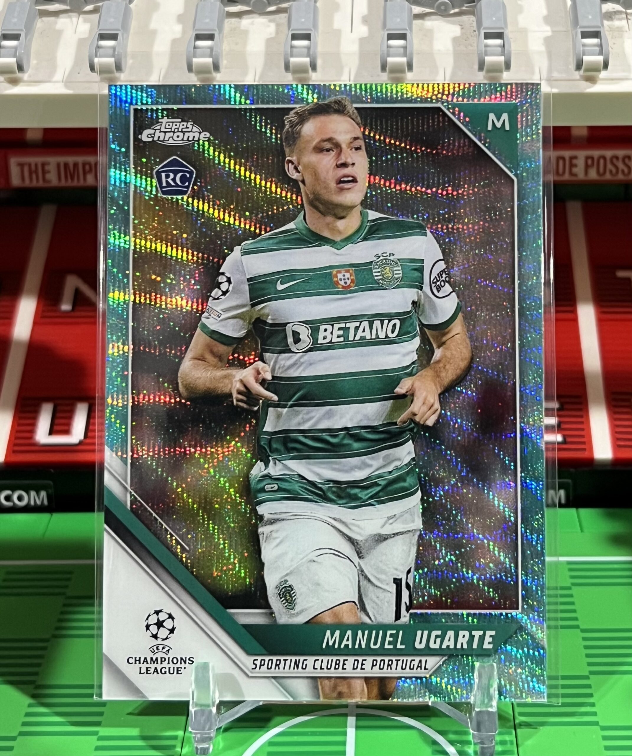 A Manuel Ugarte rookie card from the 2022 Topps UEFA Club Competitions collection.