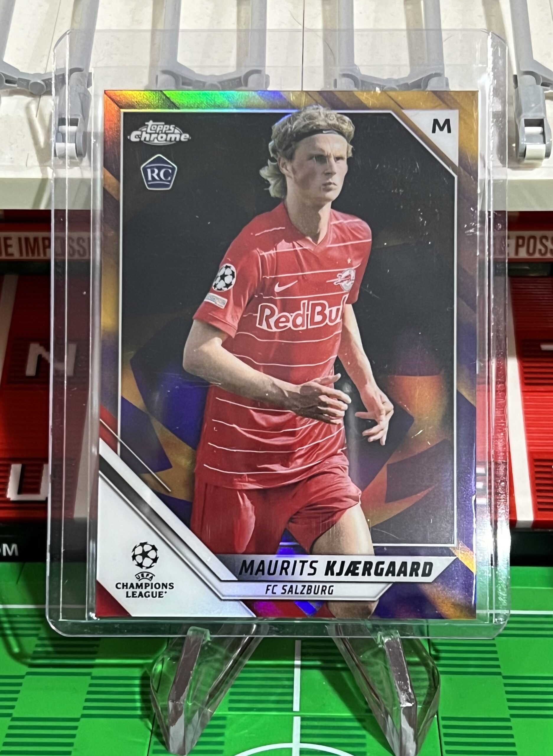 Description: Maurits Kjaergaard rookie card from the Topps Chrome UEFA Champions League collection