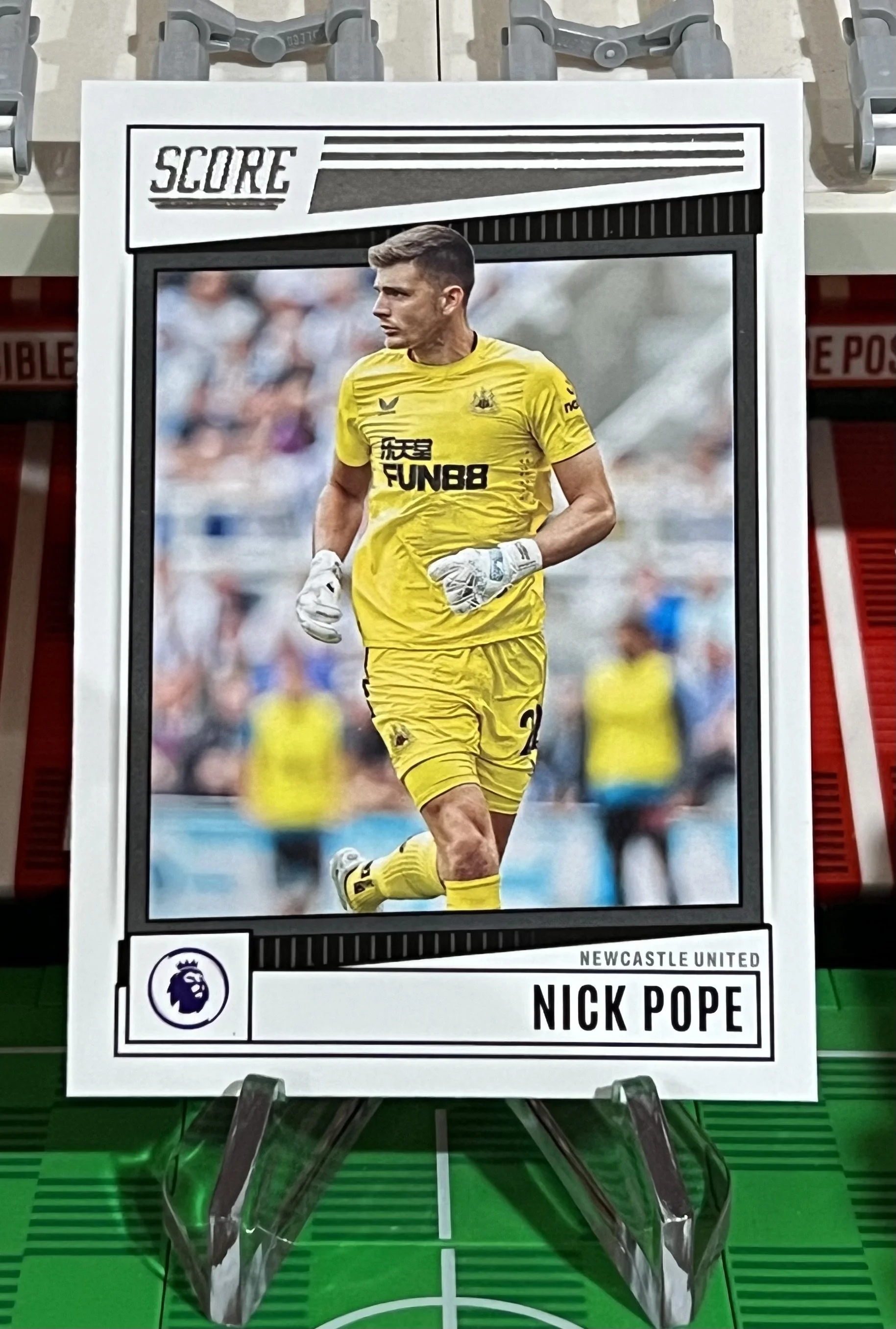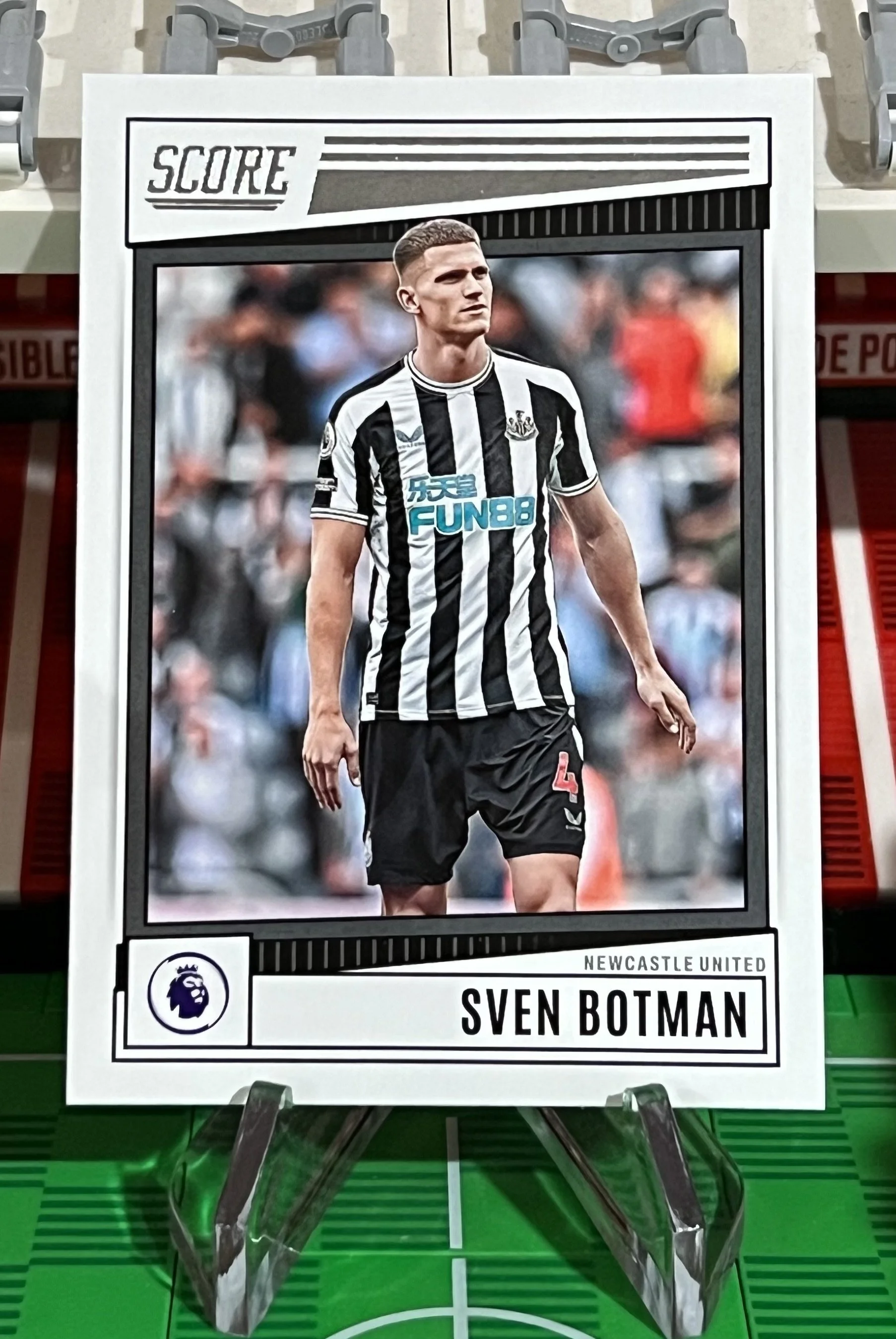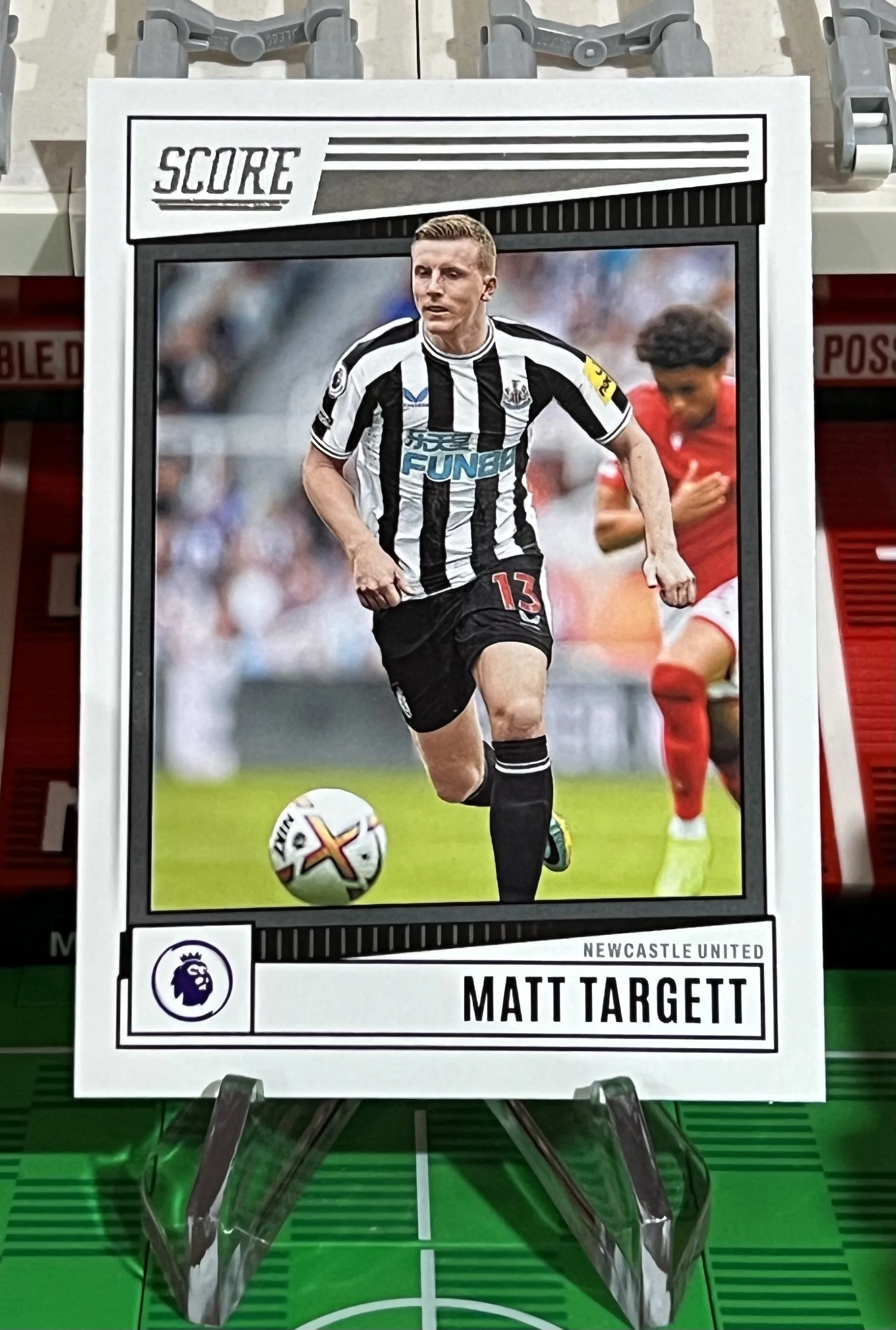 A collection of Newcastle United 2023 Panini Score cards including a Bruno Guimaraes Hot Rookies card and Callum Wilson Silver Laser card.