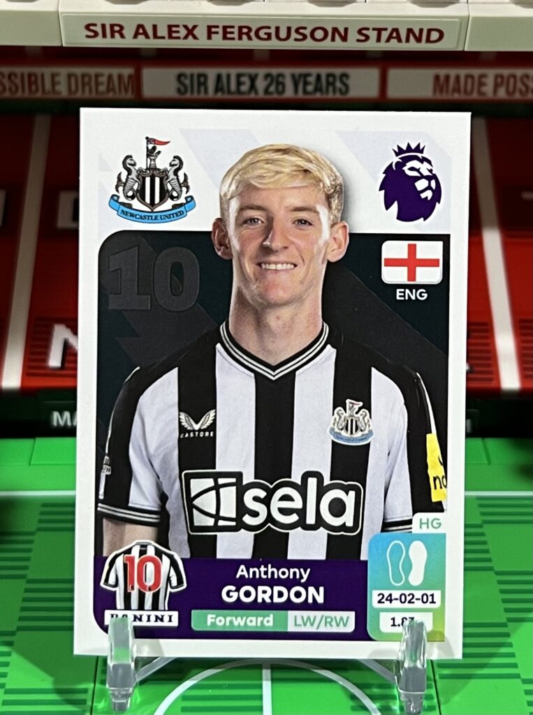 Description: Anthony Gordon sticker from the 2024 Panini Premier League sticker collection