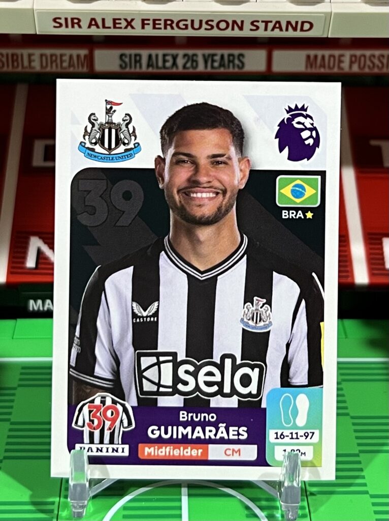 Description: Bruno Guimaraes sticker from the 2024 Panini Premier League sticker collection