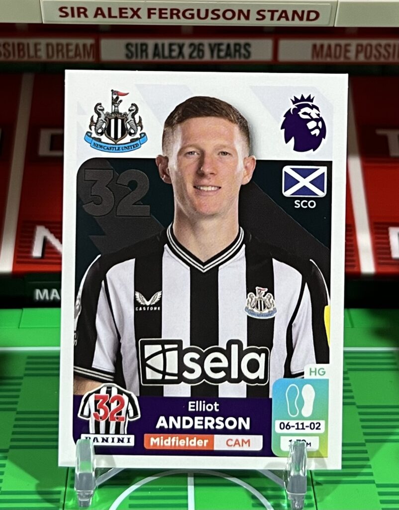 Description: Elliot Anderson sticker from the 2024 Panini Premier League sticker collection