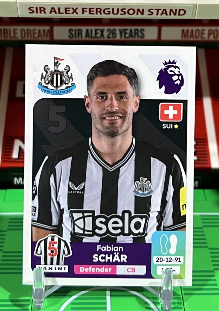 Description: Fabian Schar sticker from the 2024 Panini Premier League sticker collection