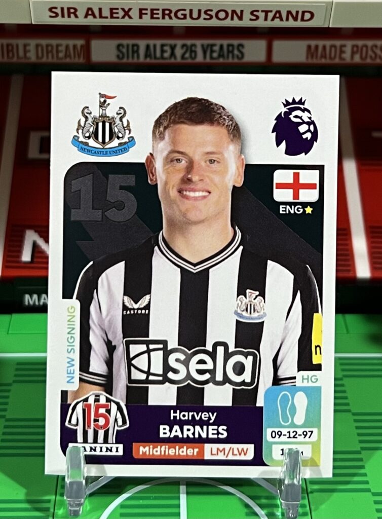 Description: Harvey Barnes sticker from the 2024 Panini Premier League sticker collection