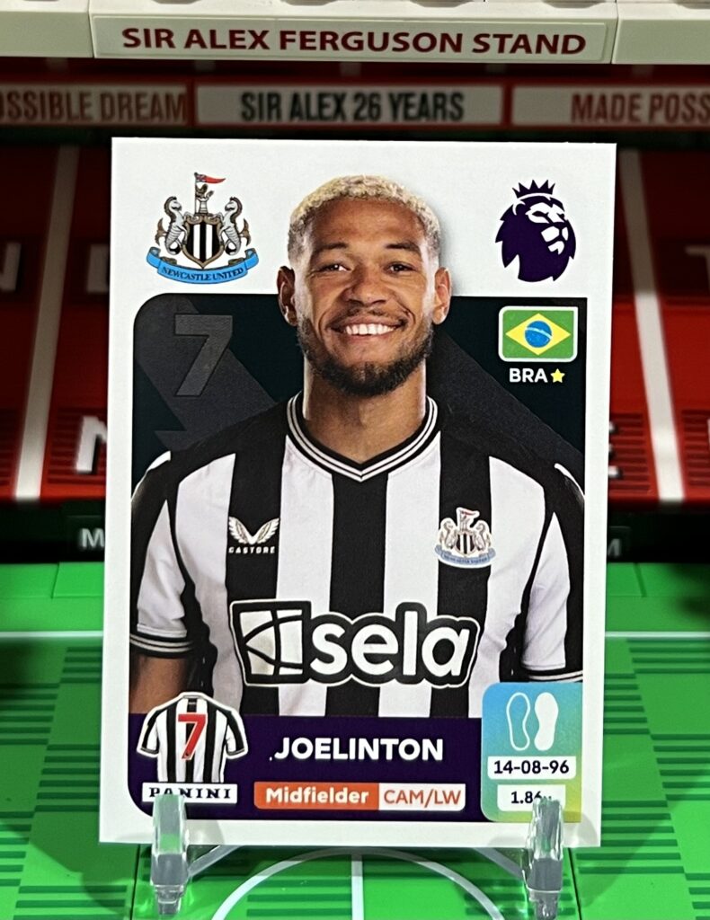 Description: Joelinton sticker from the 2024 Panini Premier League sticker collection