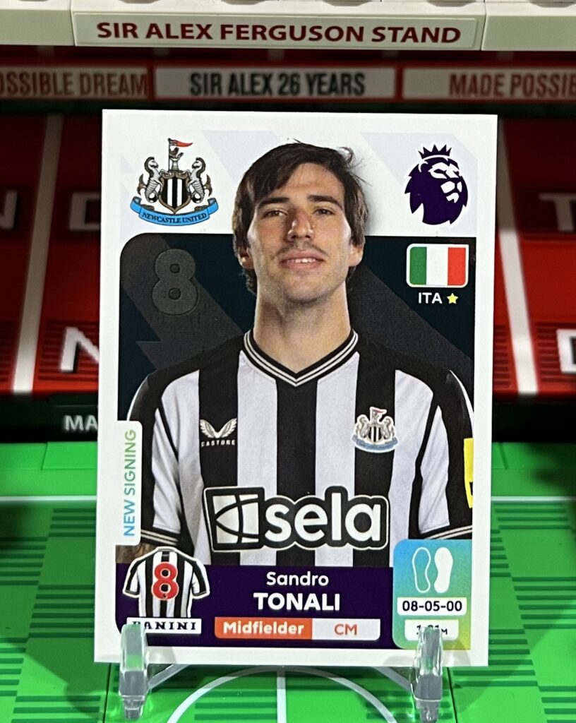 Description: Sandro Tonali sticker from the 2024 Panini Premier League sticker collection