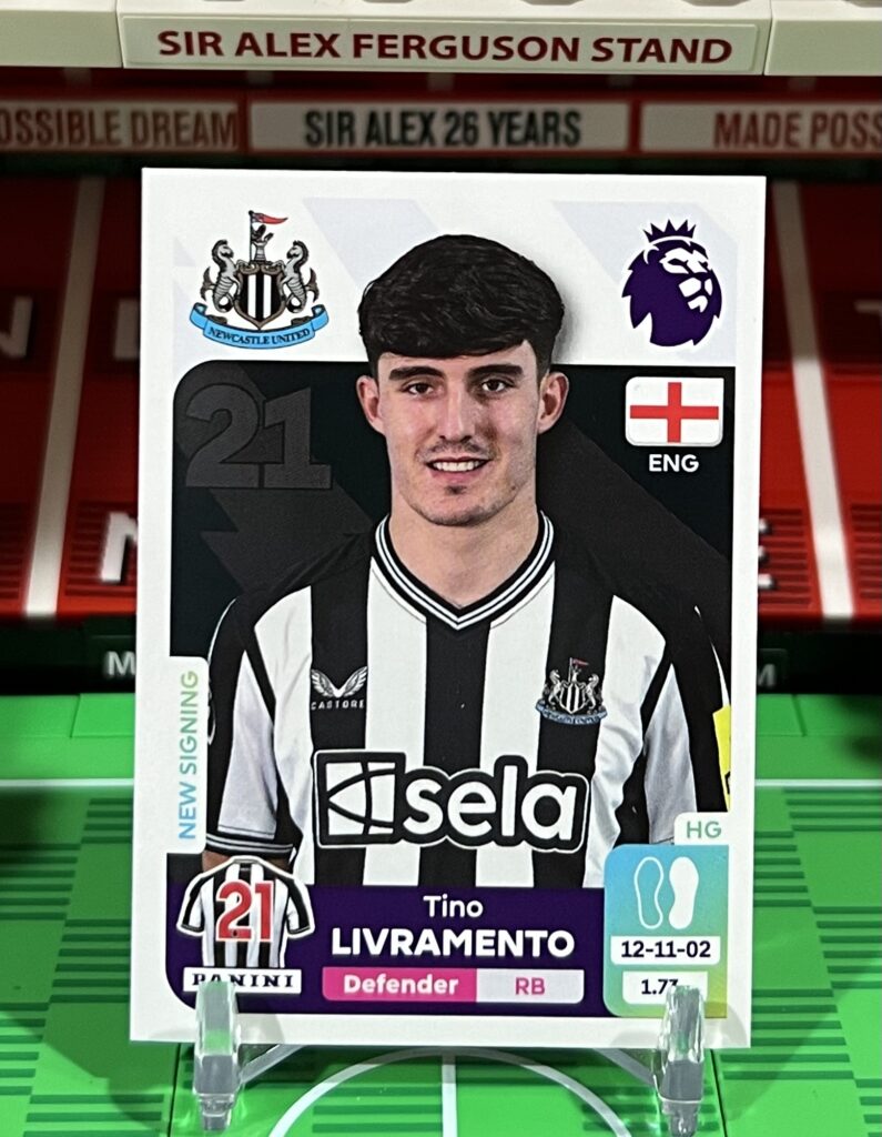 Description: Tino Livramento sticker from the 2024 Panini Premier League sticker collection