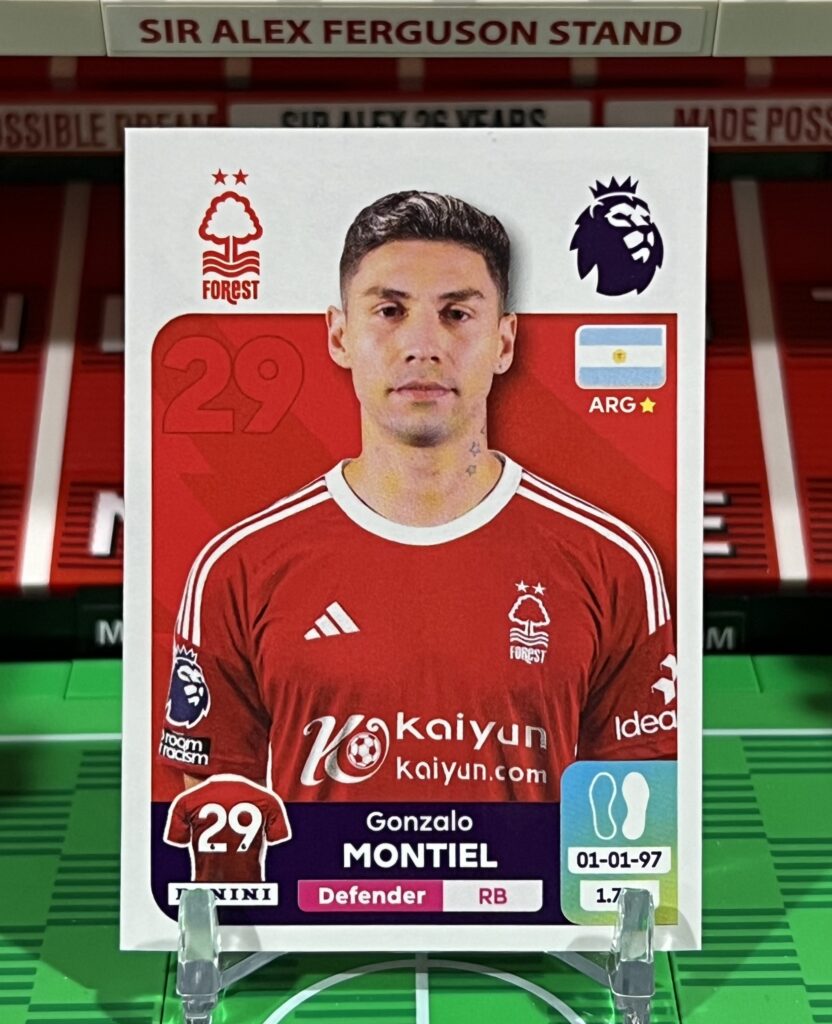 Description: Gonzalo Montiel sticker from the 2024 Panini English Premier League sticker collection