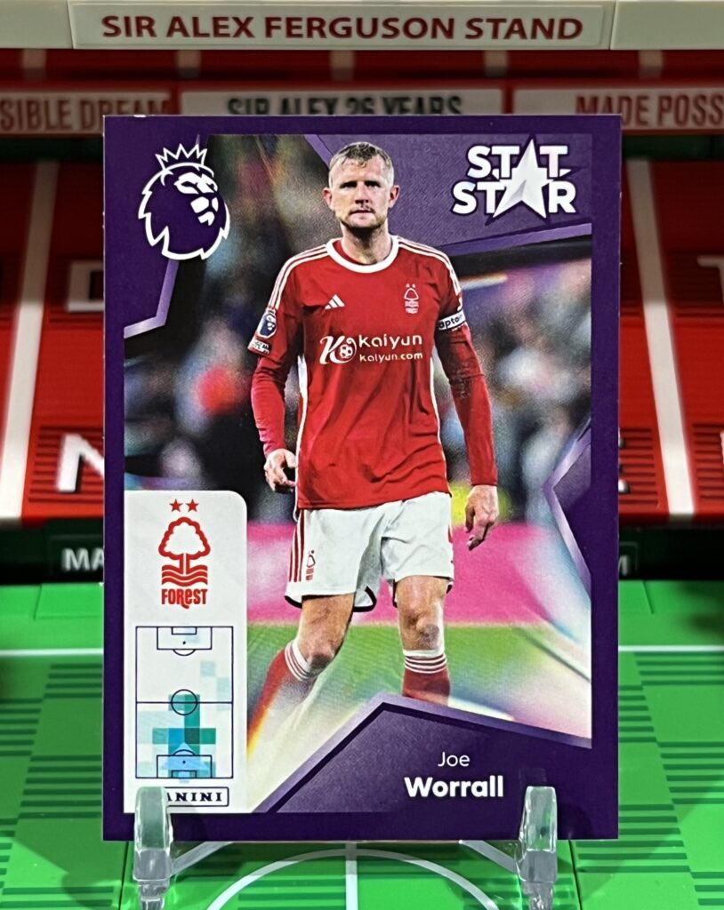 Description: Joe Worrall Stat Star sticker from the 2024 Panini English Premier League sticker collection