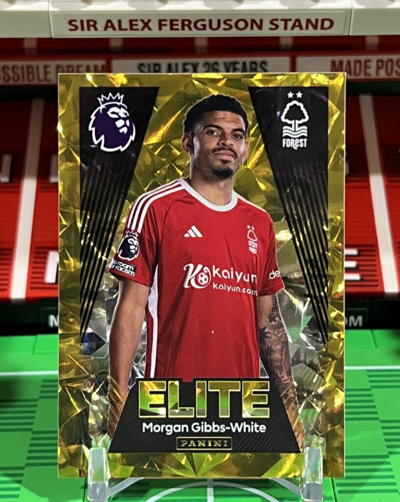 Description: Morgan Gibbs-White Elite sticker from the 2024 Panini English Premier League sticker collection