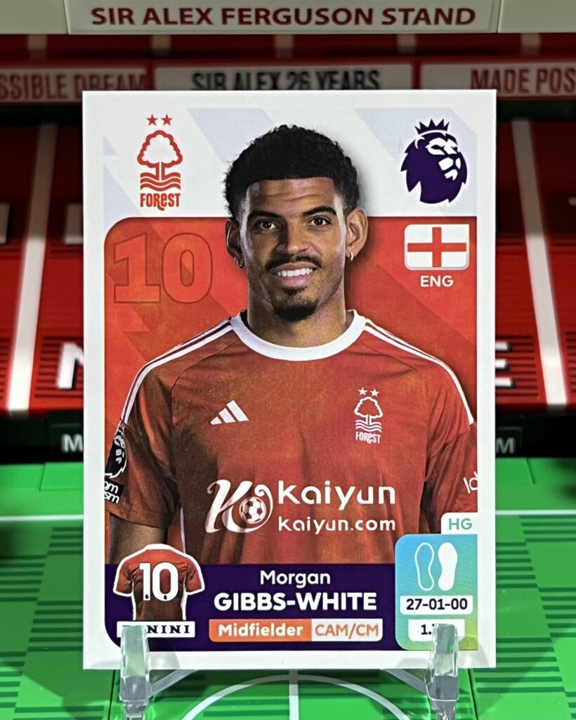 Description: Morgan Gibbs-White sticker from the 2024 Panini English Premier League sticker collection