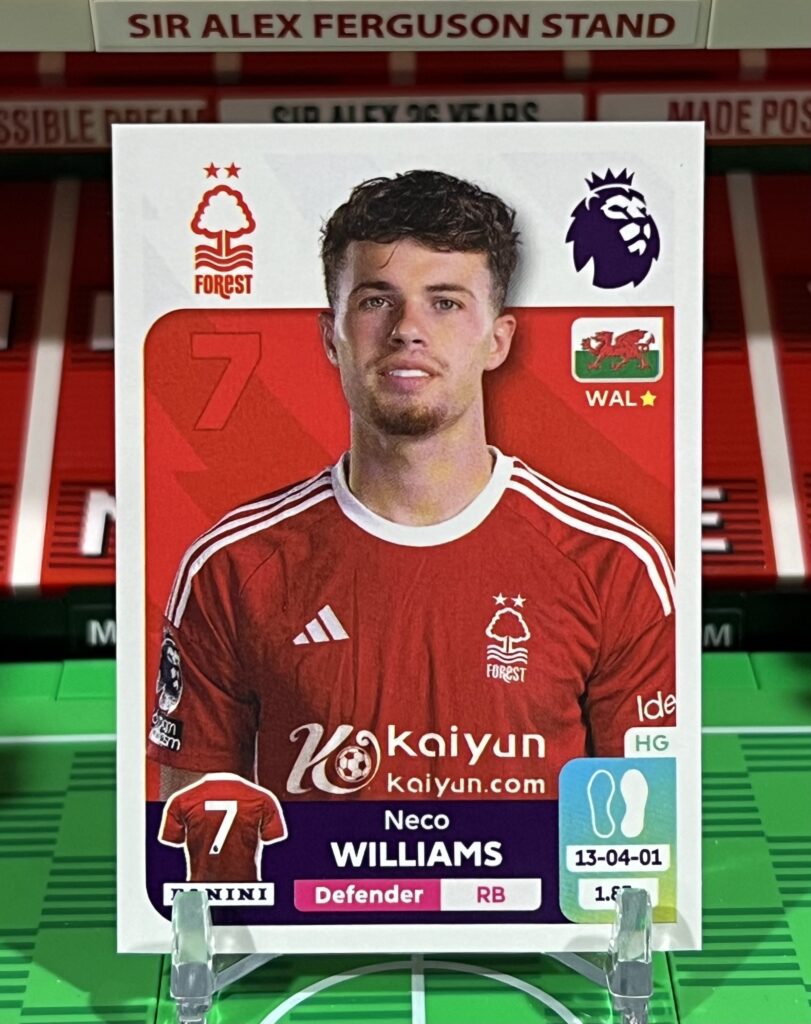 Description: Neco Williams sticker from the 2024 Panini English Premier League sticker collection