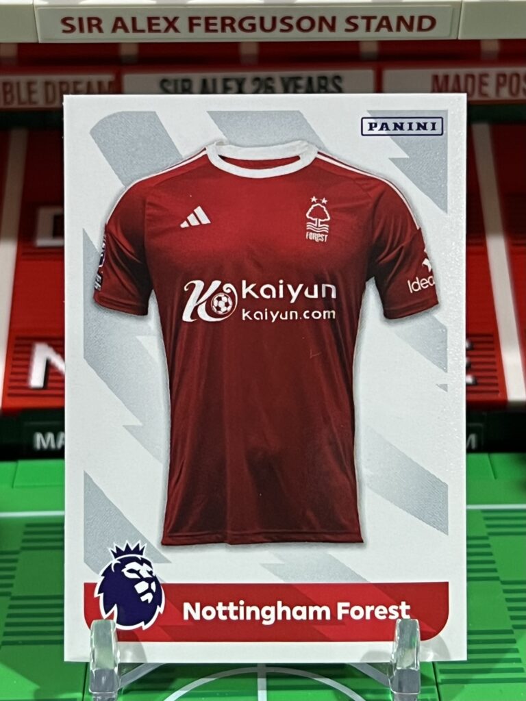 Description: Nottingham Forest Kit sticker from the 2024 Panini English Premier League sticker collection