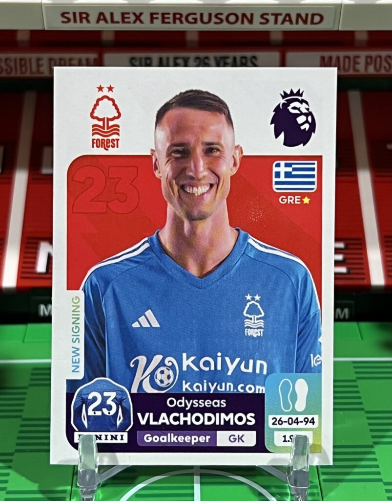 Description: Odysseas Vlachodimos sticker from the 2024 Panini English Premier League sticker collection