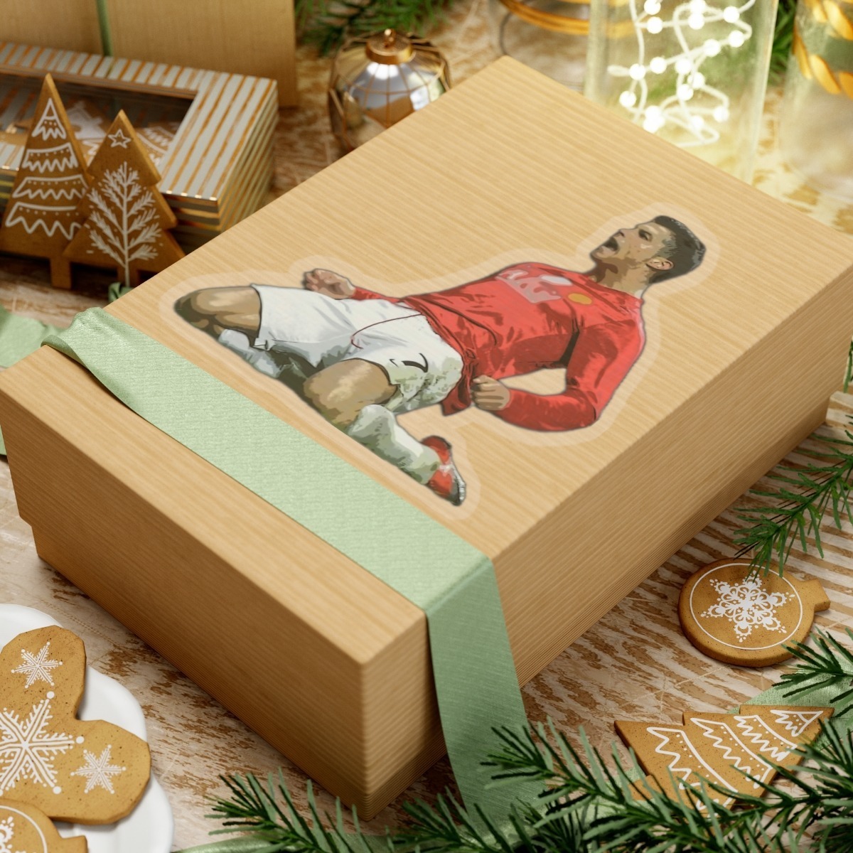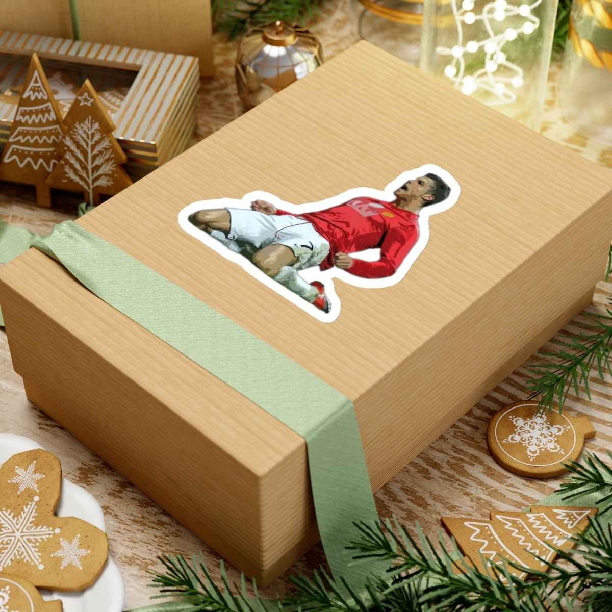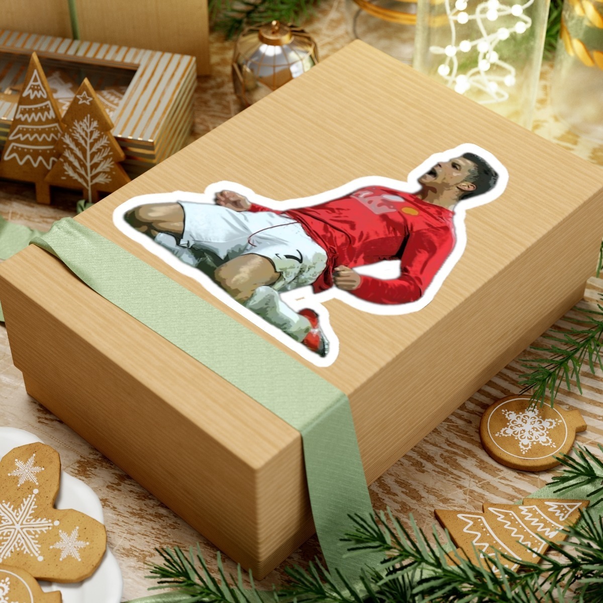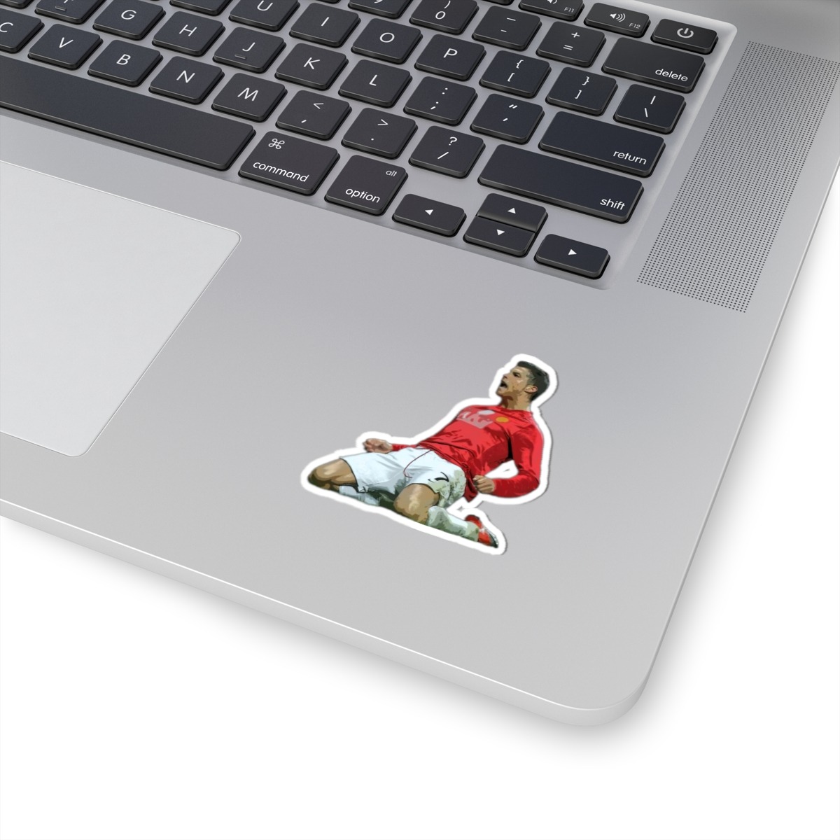 This is a Cristiano Ronaldo Slide Celebration Kiss-Cut Sticker. This was when Cristiano Ronaldo celebrated after scoring a goal for Manchester United. A kiss-cut provides you with the ultimate flexibility for implementing your vision—this method cuts the sticker into any shape you desire, while leaving the back intact so that it can be smoothly peeled off the page.