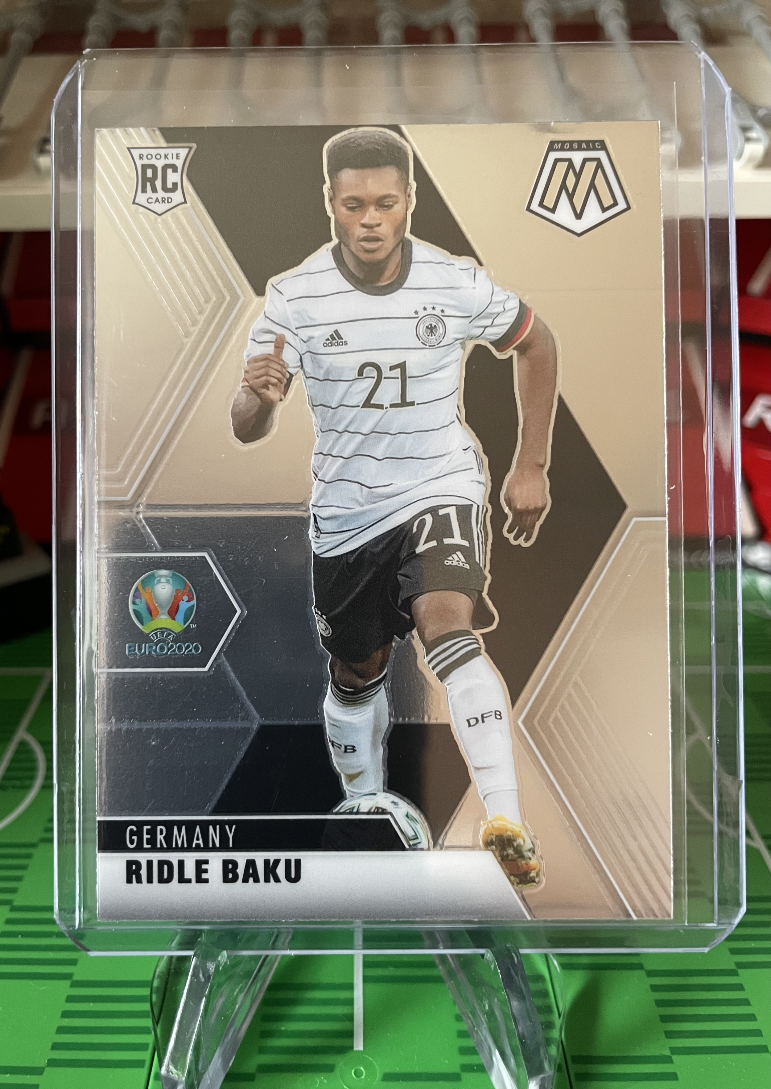 Description: Ridle Baku base rookie card from the Panini Mosaic Euro 2020 collection