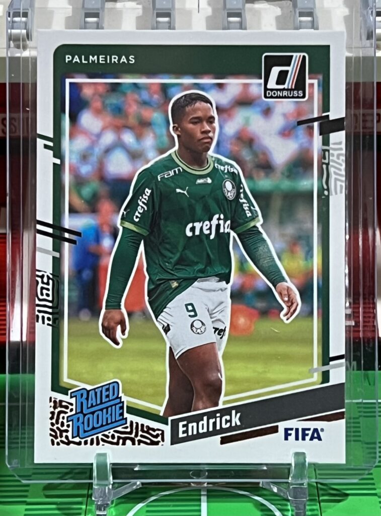 A collection of Endrick soccer cards including an Endrick rookie card from the 2024 Topps UEFA Club Competitions collection. Fun Fact: Endrick burst on to the scene with Palmeiras as …