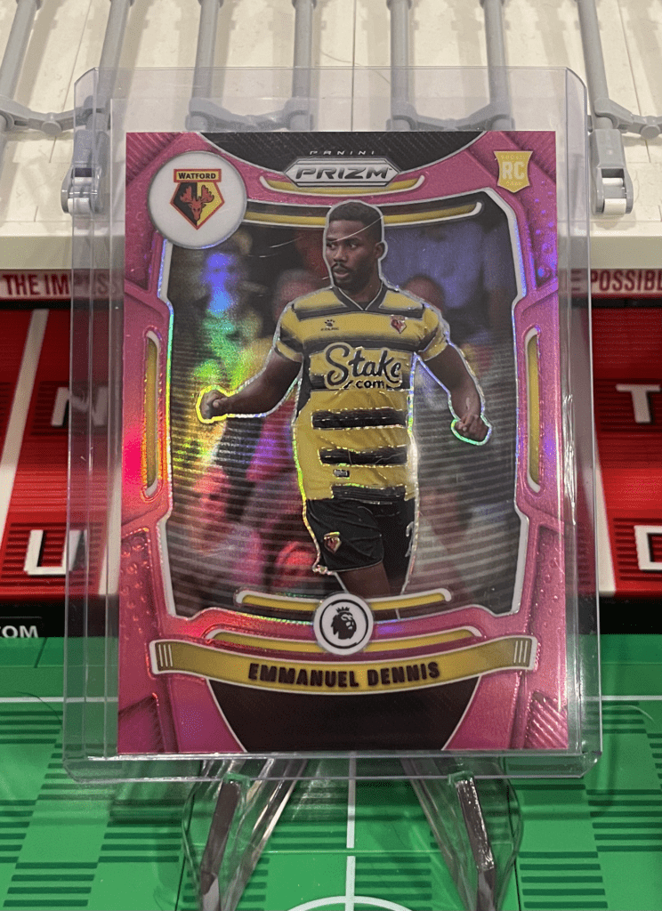 A collection of Emmanuel Dennis soccer cards including the Emmanuel Dennis rookie card from the Prizm Panini Premier League collection. Name: Emmanuel Dennis Manufacture: Panini Number: Year: 2021-22 Description: Emmanuel …
