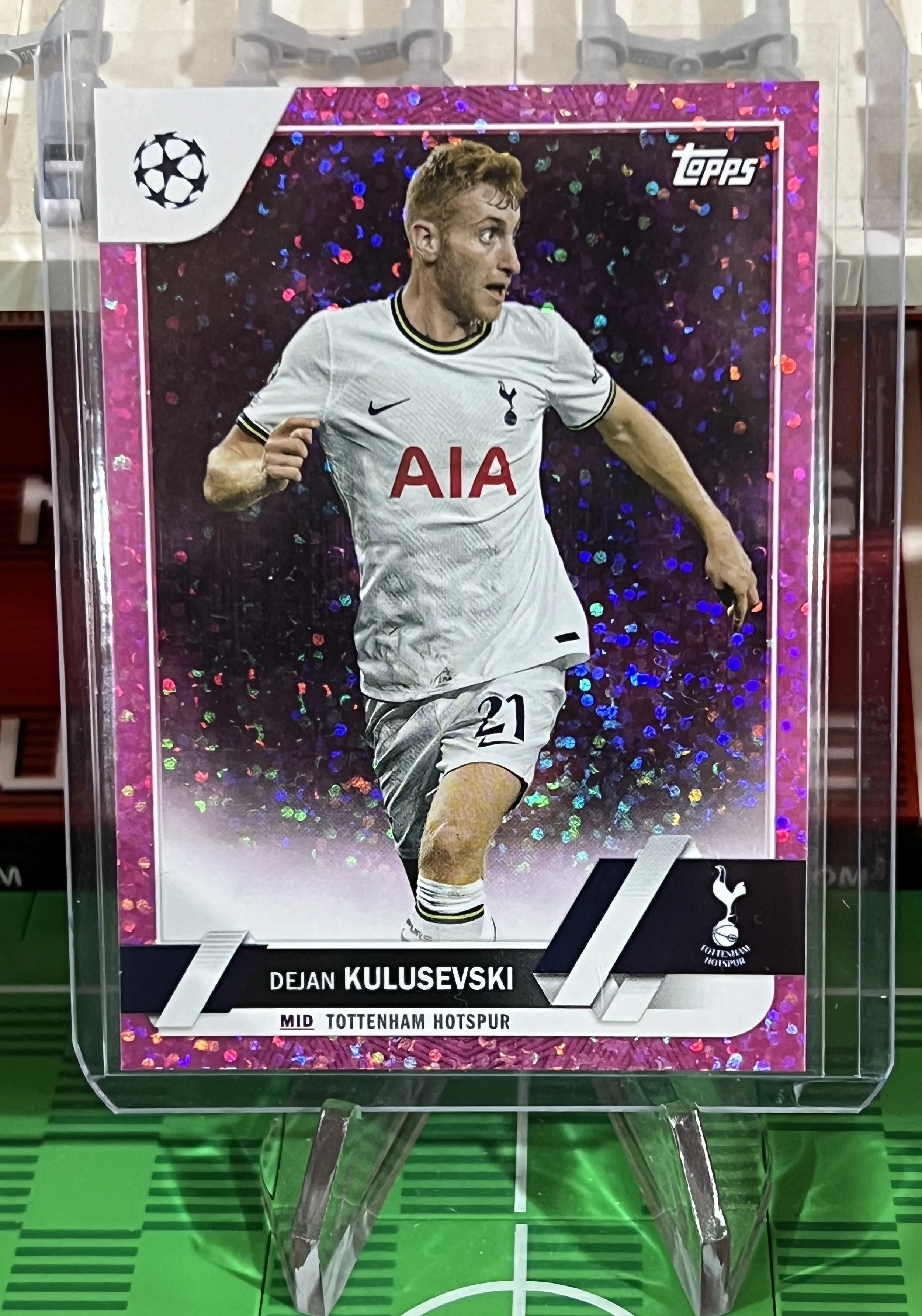 Description: Dejan Kulusevski purple parallel card from the 2023 Topps UEFA Club Competitions Cards collection
