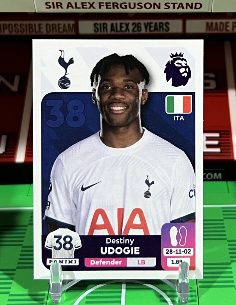Description: Destiny Udogie card from the 2024 Panini Premier League sticker collection