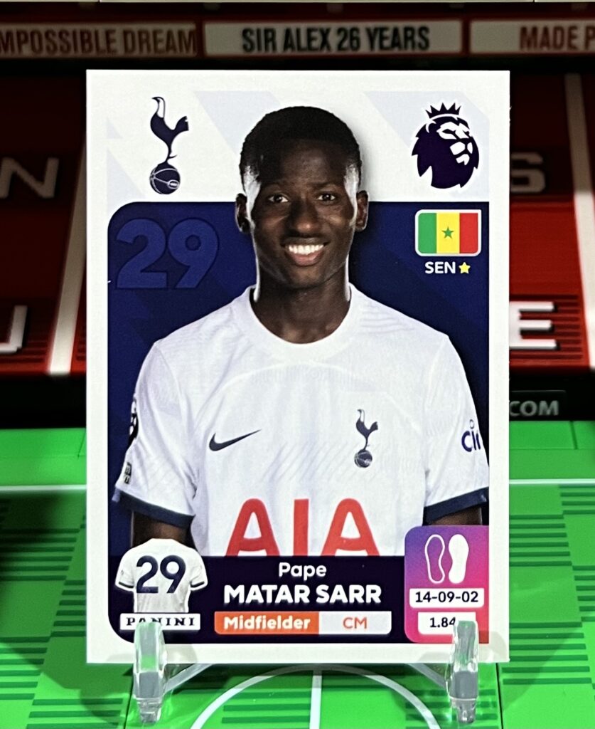 Description: Pape Matar Sarr card from the 2024 Panini Premier League sticker collection