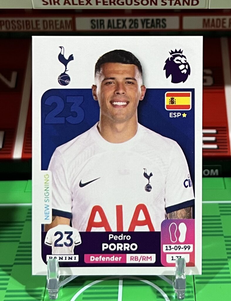 Description: Pedro Porro card from the 2024 Panini Premier League sticker collection