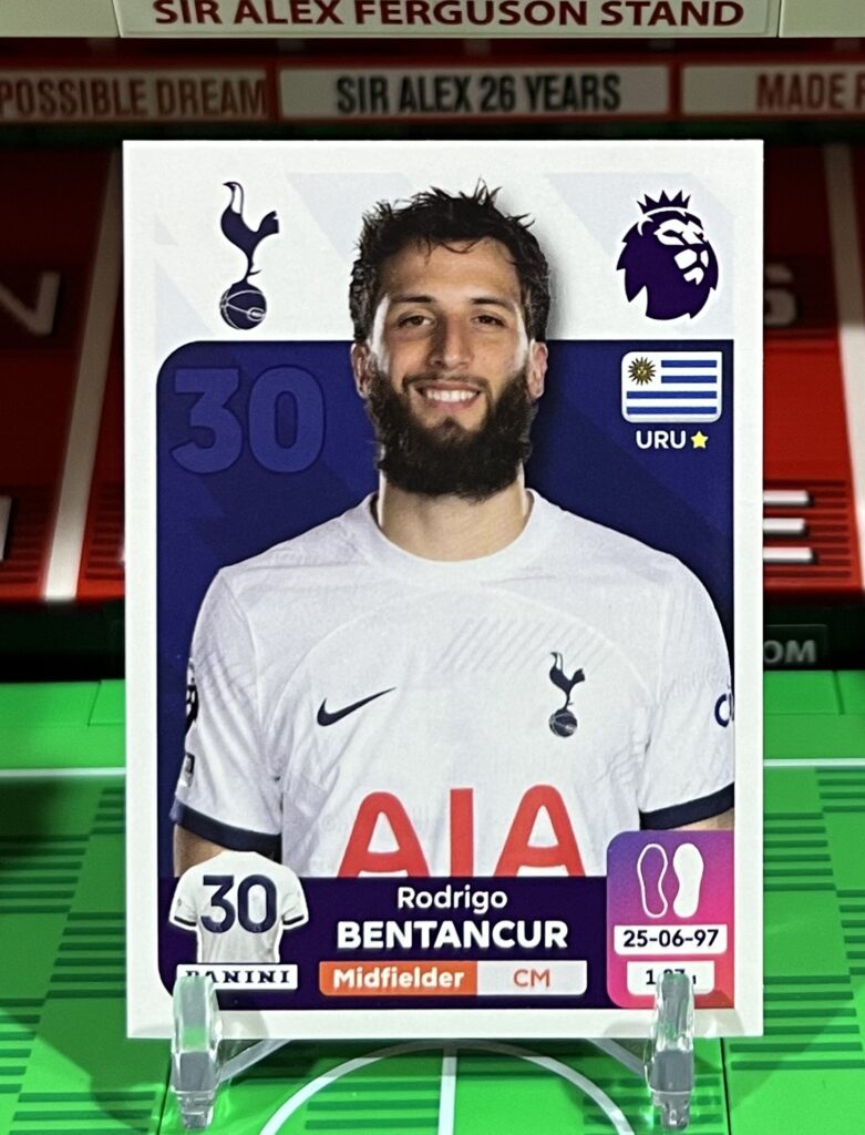 Description: Rodrigo Bentancur card from the 2024 Panini Premier League sticker collection