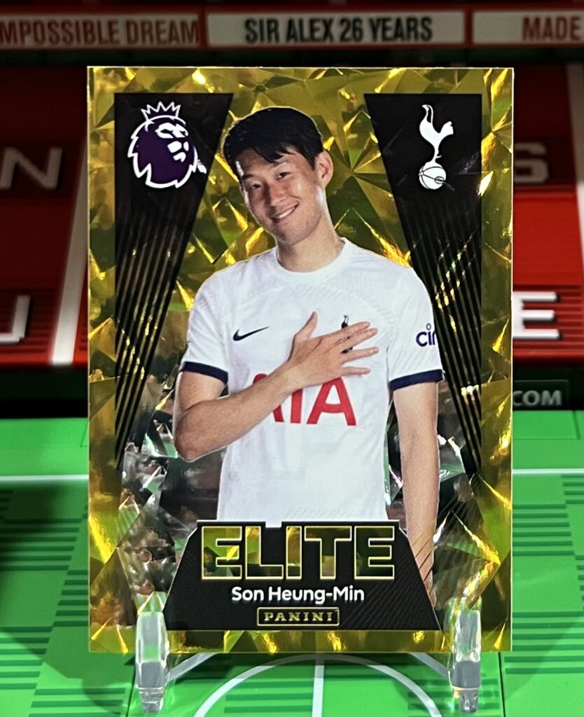 Description: Son Heung-Min Elite card from the 2024 Panini Premier League sticker collection