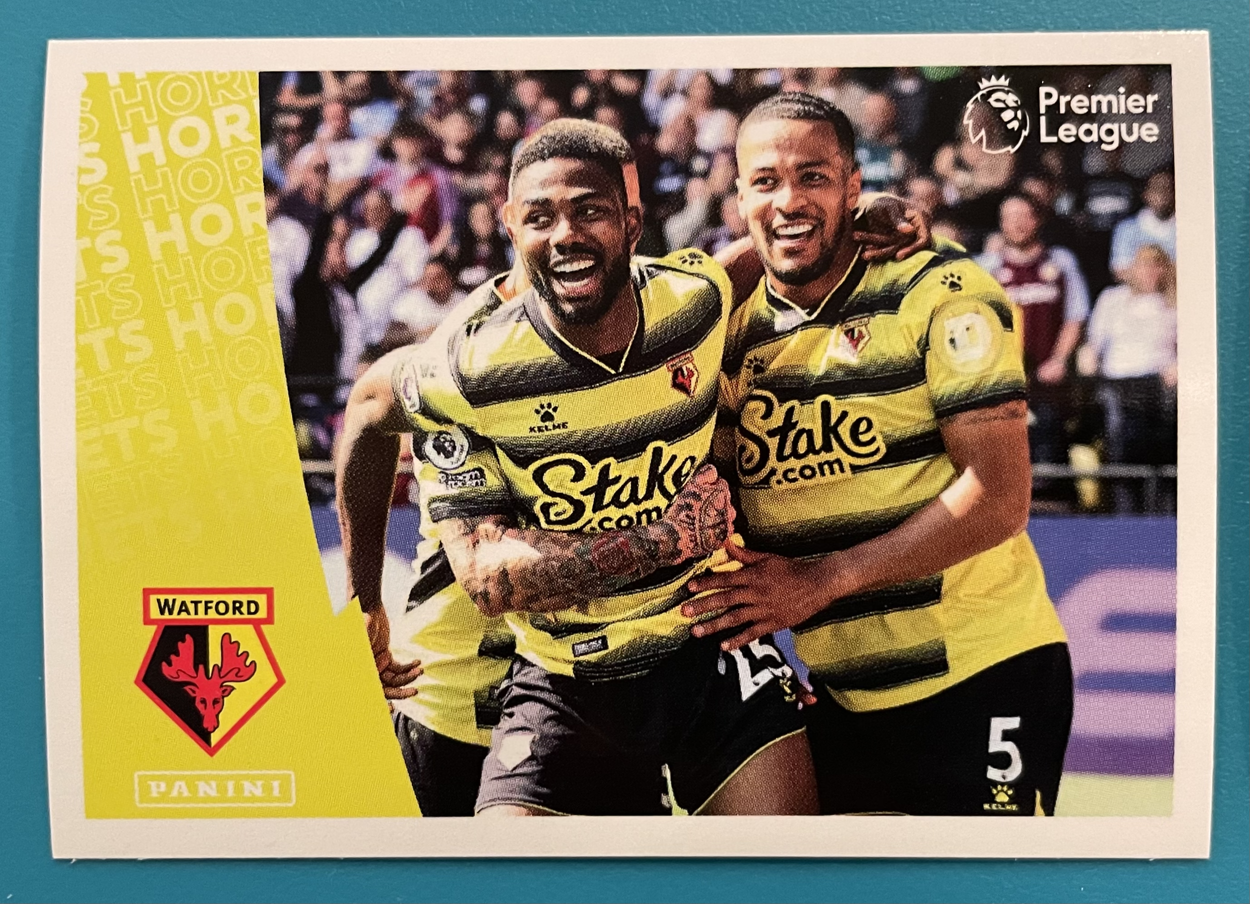 Description: Watford Home Shirt card from the Panini Premier League sticker collection